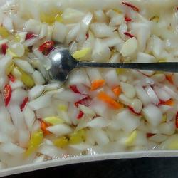 4. Rinse the salted radish with water (to flush away the excess salt), and drain the water backup copy.