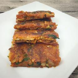 3. Put all the leeks, flour, corn starch, fried minced meat and kimchi Pour into a container and stir into a paste, let it sit for about ten minutes!