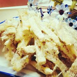8.Pour in the fried taro and stir quickly so that the sugar water hangs evenly on the taro