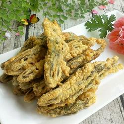 5. Heat the pan until the oil is hot, wrap the Chinese toon in the batter and add it one by one over medium to low heat.Fried skin is golden and crispy and fished out