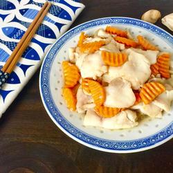 4. Add salad oil to the pot and heat until medium ripe, blanch the carrot slices in the oil Take it out, drain the oil and set aside.