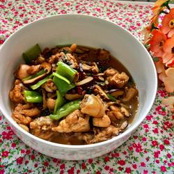 6.Stir-fry until all the chicken pieces turn yellow, add appropriate amount of oyster sauce and continue stir-frying