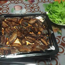 3. The heating temperature of the upper and lower tubes is 180.This should be baked for 20 minutes according to the temperature conditions of your own oven.If you like it sweet, you can brush some honey on it and then turn it over and continue baking.Make for 20 minutes