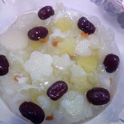 6. Finished product picture, apple pear The red date, wolfberry and white fungus soup is ready.