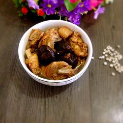 1.Prepare Collect the required ingredients.You can cut the chicken into small or medium pieces.Soak the mushrooms in water for two hours and set aside.Remove the stems