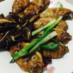 4. Apply some oil to the bottom of the rice cooker, and spread a layer of sliced ginger and onions in sequence., mushrooms, then put the marinated chicken wings on top, pour the marinated seasoning evenly on top, and then press the cooking button of the rice cooker.