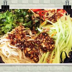 8.Add the prepared shredded chicken, various dish codes and seasonings juice, mix well and serve to make a delicious bowl of cold shredded chicken and tartary buckwheat noodles.