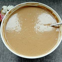 2.Pour the sesame paste into a clean basin, add sugar and a little salt, and add warm water in batches to start preparing
