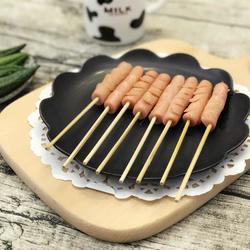 3. Wash and dry the bamboo skewers and then skewer them into the sausage.