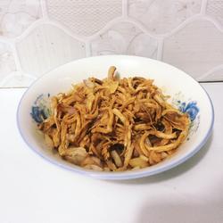 4. Mix in onions Add soy sauce, salt, and chili oil to the shredded chicken in sequence.Pour sesame oil into the pan, mince garlic, mince dried chili peppers, pour into the pan, and stir-fry.When the garlic smells fragrant, bring the oil to a boil.