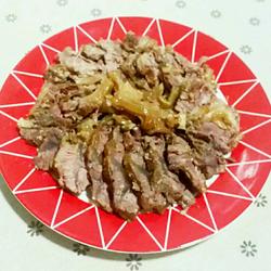 9. Take out the spiced beef that has been soaked in the soup overnight, slice it into pieces and put it on a plate;