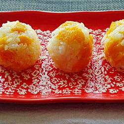 7.After cooling slightly, shape into rice balls and eat with a fork, or just use your hands! One mouthful, I can responsibly say that it is only rice and mango, without any other additives, it is so delicious!