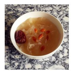 3.Wash the fermented white fungus carefully and tear it into small florets.(This process must be carefully washed.) Prepare jujube, wolfberry and rock sugar.The rock sugar must be in the form of lumps