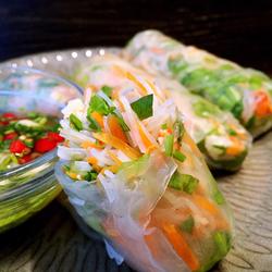 6.6.Place the spring rolls on a plate, serve with dipping sauce on the side, and serve Bar!