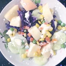 4. Cut the apple into cubes, peel off the cucumber and slice it into slices.It’s ready to serve.Finally, put the salad dressing according to your preference!