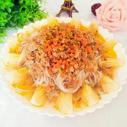 6. Remove the baby cabbage, drain the water and put it into a plate, put the vermicelli on it and set aside