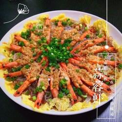 Pour the remaining juice evenly into the vermicelli and cabbage in a circular motion- 13. Stew water in a pot, bring to a boil over high heat, add shrimps and steam for 3-5 minutes, large shrimps for 5 minutes, small shrimps for 3 minutes, steam for a long time Too old to taste