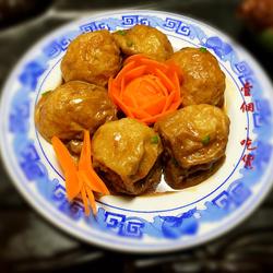8. Stuff the mixed minced meat into the oily gluten with chopsticks Inside;