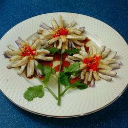 4. After steaming, take it out ~ pour out the water in the dish ~Pick open the eggplant with the tip of chopsticks~Then put the red pepper in the middle of the eggplant~And then add the citron