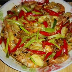3.Put in appropriate amount of oil, fry the prawns and ginger and put on a plate