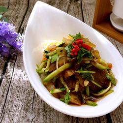 3. Put the cucumber and coriander in the jellyfish head, pour the sauce and mix well.Can.