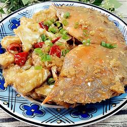 4. Heat the ginger in the pot and sauté the crabs until fragrant, stir-fry for 3 to 5 minutes and add cooking wine and soy sauce