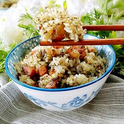 9. Heat the pot, first add the fat bacon and stir-fry the lard, because wormwood must be fried in lard to taste delicious.