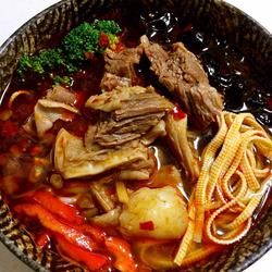 The red soup is the color of bean paste, not spicy because of the douban paste The sauce is made with Erjingtiao peppers, so it's not spicy.If you like it spicy, you can add a few more chili peppers.If you don’t have enough time, you can stew the beef brisket for about an hour and a half and then you can make the soup.The selected high-quality beef brisket is bought from Yangmu Tianbian*.Friends who like it can go to * to check (*)