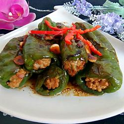 • Illustration of how to make fried and stuffed green peppers 99.Add green pepper and fry over low heat