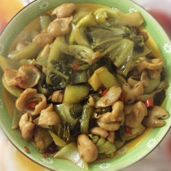 If you are tired of eating meat, you can try the sauerkraut intestine, sauerkraut squid, and sauerkraut fish.They are all more appetizing dishes.Most of my cooking is messy, and I try to taste it in the middle of the meal to make up for whatever flavor I missed in class.Fortunately, most of them are successful.