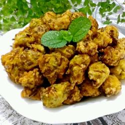 6. Heat oil in a pan, squeeze the meatballs into a small spoon, and then fry them in the pan