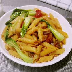 5.Continue to add the rapeseed and stir-fry the macaroni until evenly colored!