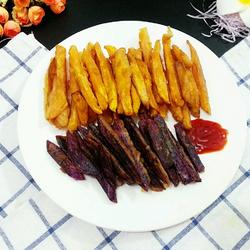 2.Peel sweet potatoes and purple potatoes and cut into strips