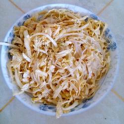1.After the ginger vermicelli is cooked, pour it in cold water, dry it out and cut it into small pieces.