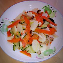 1.Put cucumber slices, carrot slices, yam slices, seafood mushrooms and blanch them in water.