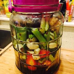 3.Cut all the vegetables into small pieces or slices, put them in a glass bottle, and boil them just now When the juice is in, the ginger and garlic must be put in, seal the lid, and put it in the refrigerator.You can eat it the next morning, and then add the vegetables after eating.