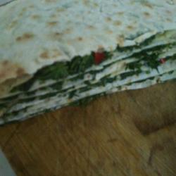 6.Put another pancake on top and gently pat the edges to prevent the vegetables from leaking out