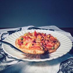 1.Take a piece of Indian flying bread and put mozzarella cheese on it