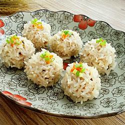 11. Roll the meatballs in the glutinous rice so that the meatballs are evenly covered with glutinous rice.