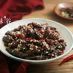 8. Pour in the beef and stir-fry until the beef is evenly coated with sesame and chili oil, add Appropriate amount of sugar, salt and soy sauce, you can taste it.