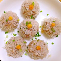 9.The glutinous rice is transparent.After the egg yolk oil is steamed out, sprinkle it with Top with chopped green onions and serve