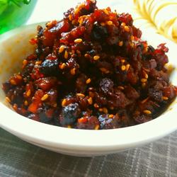 In the beef sauce made with the above method, the beef is as chewy as dry-stirred shredded beef.If you don't like the texture of beef that is too dry, you can take the beef out while it is being stir-fried, continue to stir-fry the spicy sauce, and then release it.Add the stir-fried beef before smoking so that the meat will not be too dry and hard.Use low heat during the sauce making process.The broad bean Yiba pot in Pixian Douban is best fried in a non-stick pan.