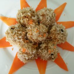 6.Roll the meatballs in the glutinous rice!