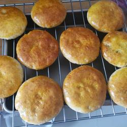 7. Flatten the rounded dough into a cake shape, brush with egg wash, let it dry for a while, and then brush with egg wash again