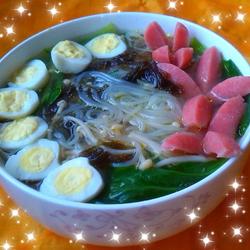 7.Put the rice noodles into a bowl, put quail eggs on top, and the sausage will be 0K