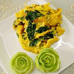 Fried eggs with wolfberry leaves