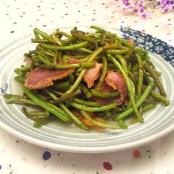 8.Add an appropriate amount of salt.The amount of salt is determined according to the saltiness of the bacon.Stir-fry evenly!