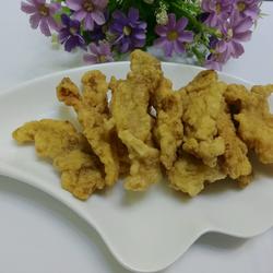 7. Coat each piece of meat with batter and put it into the oil pan.