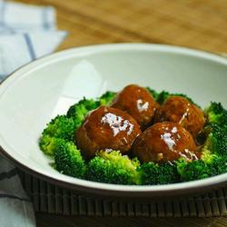 7. Turn to medium heat, simmer until the juice is reduced, remove the meatballs, and add appropriate amount The starch water is added to the soup in which the meatballs have been cooked, and finally poured over the meatballs~