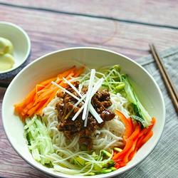 You can put shredded vegetables according to the type you like.If you like spicy food, you can also put chili in the sauce.The sauce is 40g of sweet noodle sauce and 20g of soybean paste is prepared~ Friends, you can also try it~